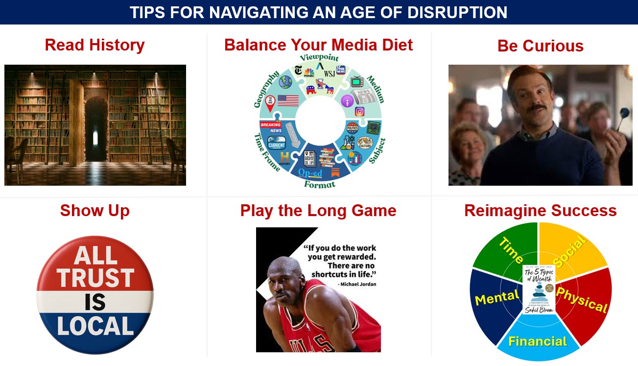 I’ve spent the past 99 weeks trying to explain the volatile period we find ourselves in — the seismic technological, geopolitical and cultural macro-trends that brought us here, define our unsettled reality and portend a dynamic future. As we head into the holiday week here are six tips for navigating these turbulent trends… how to maintain your perspective, objectivity & sanity in our age of disruption.