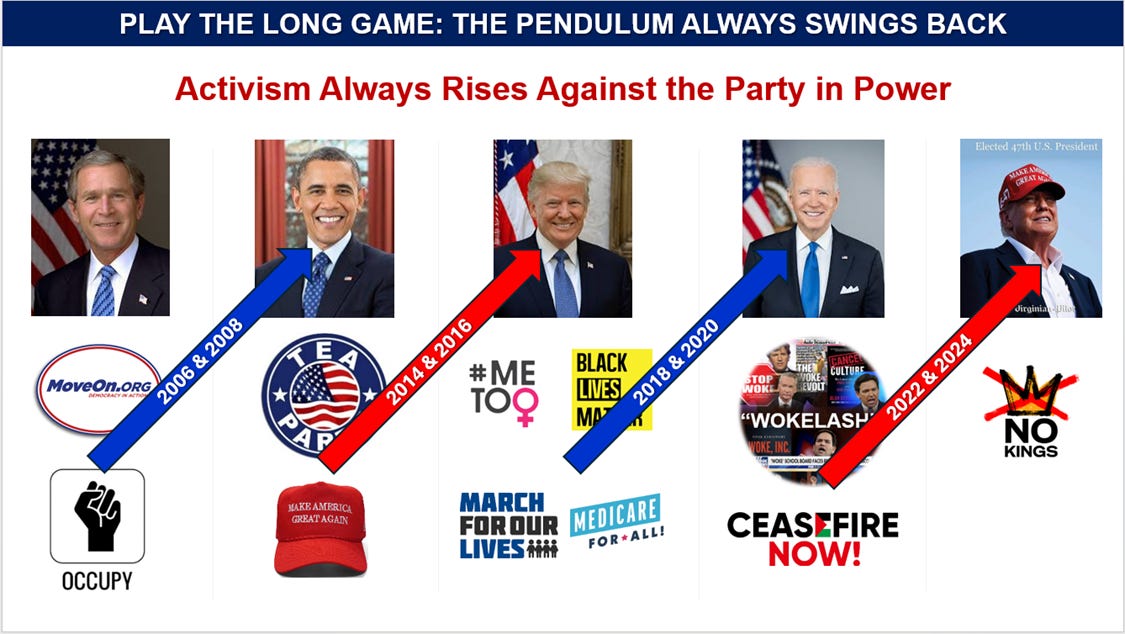 Success compounds over time. Shortcuts rarely do. Great businesses, investors and families play the long game… seeking slow & steady progress while avoiding big mistakes. In politics and life, playing the long game means minding your reputation for honesty & reliability, dealing squarely with a wide array of stakeholders, doing unto others as you’d have done to you and critically, remaining bipartisan… because the pendulum always swings back.
